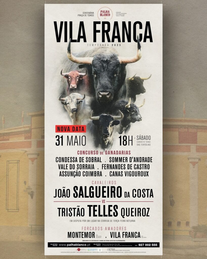 💥 Nova data💥 Os mesmos Toiros💥 Os mesmos Forcados💥 Novos cavaleiros 👉 A mesma promessa: uma grande tarde de TOIROS na Palha Blanco! 31 de maio – marque já na agenda. Bilhetes à venda em www.palhablanco.pt☎ 927 002 555🎟 Os bilhetes do dia 4 são válidos. Vemo-nos em Vila Franca!